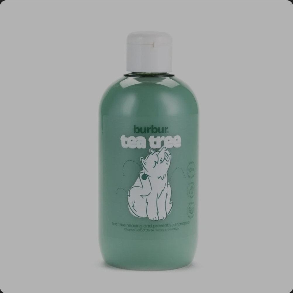 Champú burbur con árbol de té preventivo y repelente para perro.