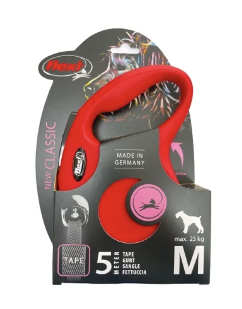 El modelo Flexi New Classic cinta ofrece una solución para el paseo de todo tipo de perros y está disponible en diferentes colores y tamaños para que puedas escoger la que mejor se adapte a tu perro.