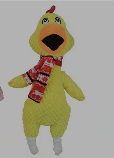 Peluche con diseño navideño y con forma de gallina. Medida 35 cm de largo. Disponible en 2 colores. Fácil de lavar.