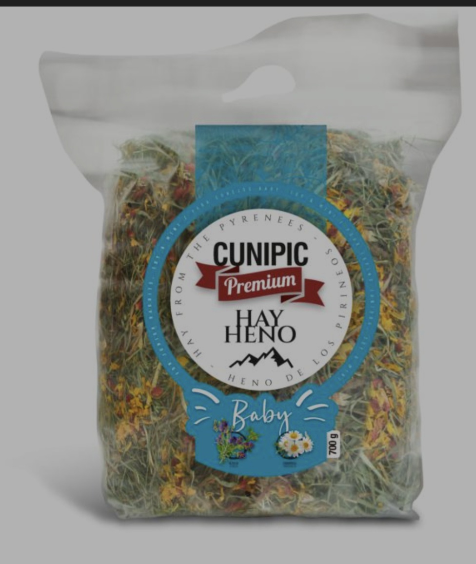Heno Premium de los Pirineos Conejo Baby 700g es un heno de alta calidad recogido en las montañas, que sirve como alimento para conejos de hasta 6 meses de edad. Enriquecido con más de 45 especies presentes en el Prado, alfalfa y manzanilla