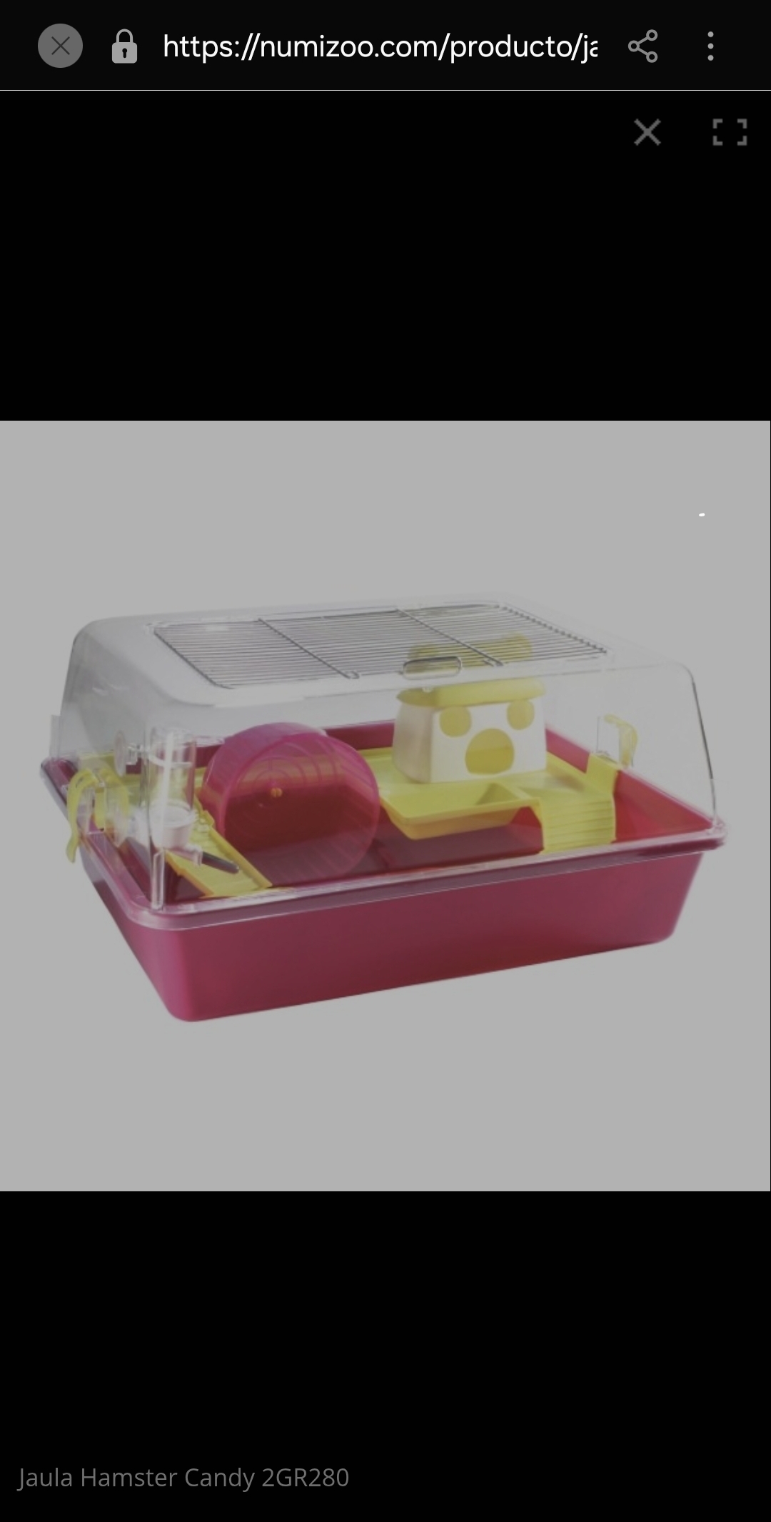 Jaula de gran tamaño muy amplia, cerrada con ventilación superior. Contiene todos los accesorios (bebedero, comedero, escalera, rueda giratoria y doble.