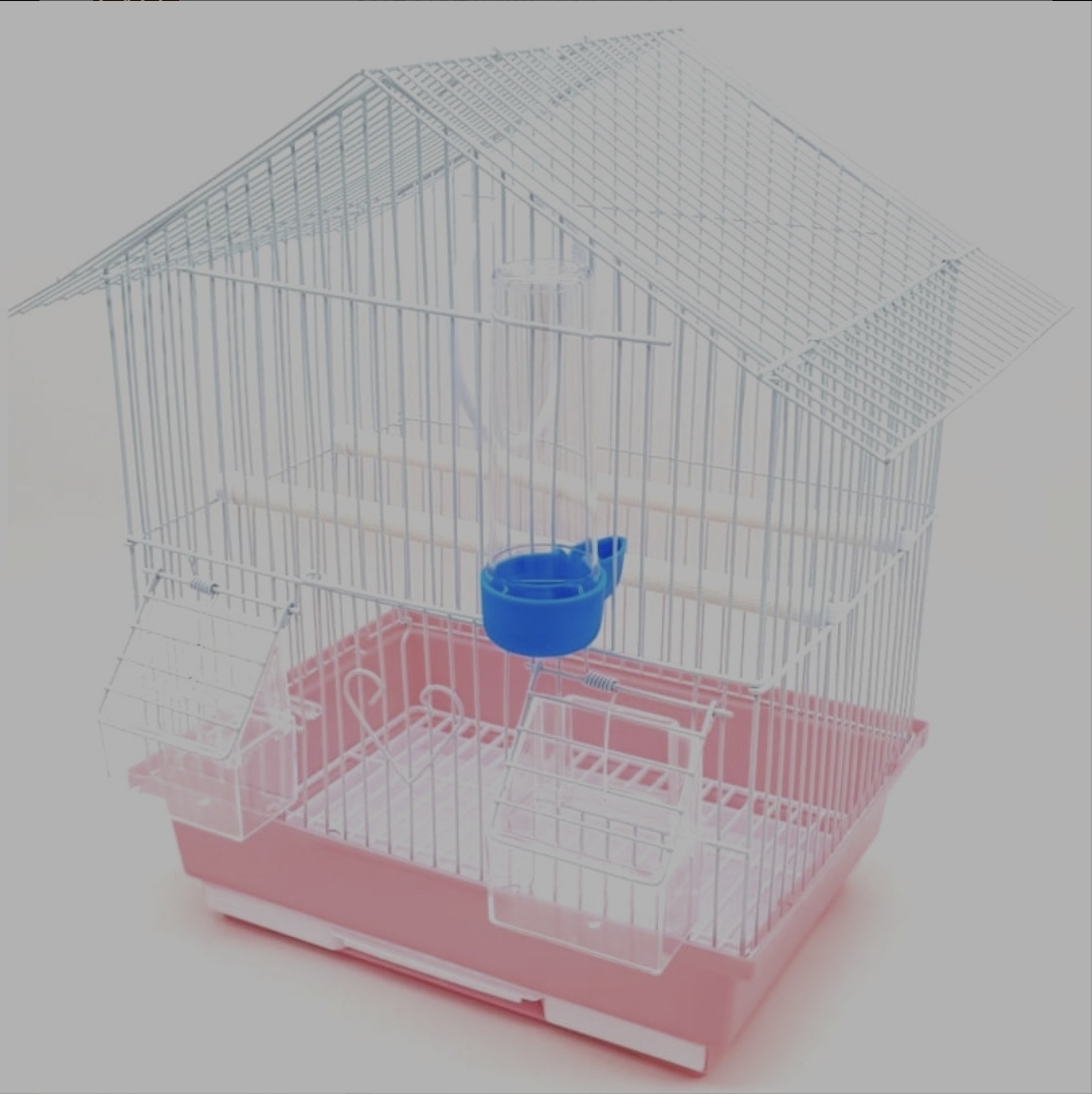 Jaula metálica blanca,con base de plástico en colores alegres .