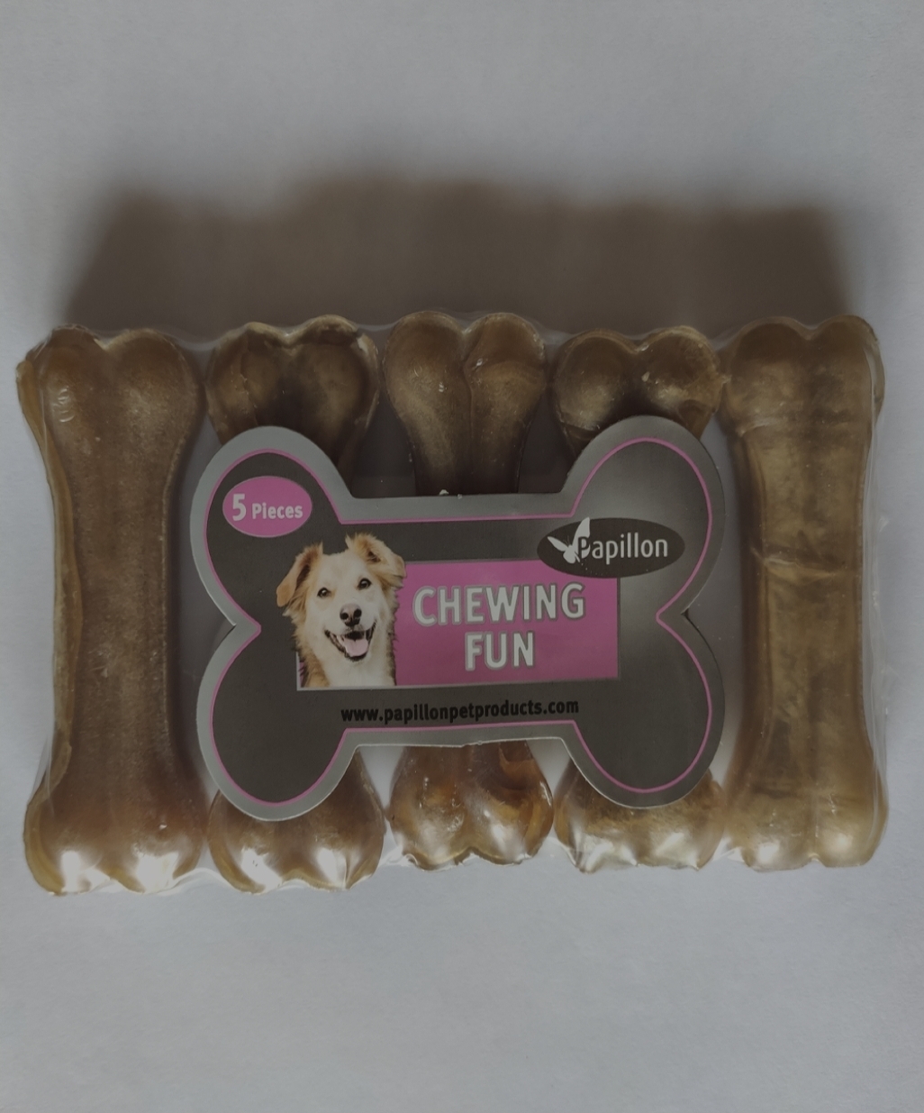 Son huesos prensados hechos de cuero crudo, diseñados para satisfacer el instinto natural de masticar del perro.