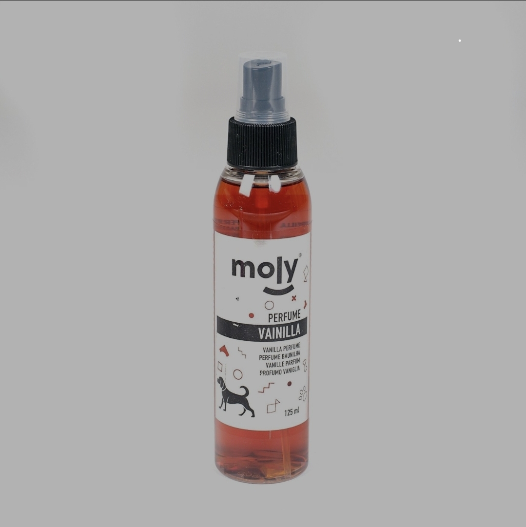 Perfume Aroma Vainilla 125 ml de Moly es la elección perfecta para mantener a tu perro siempre fresco, con un aroma dulce y agradable sin resultar invasivo. Su delicada fragancia a vainilla ofrece una sensación cálida y reconfortante, ideal para usar después del baño o entre lavados.
