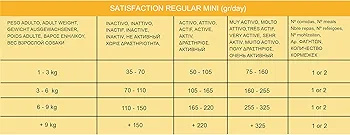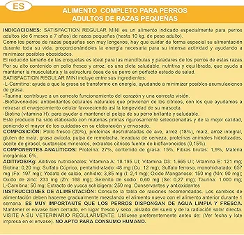 - Para perros pequeños o mini (hasta 10 Kg de peso): Satisfaction Regular Mini.